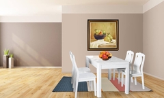 - Bàn ăn khung gỗ tự nhiên phủ sơn cao cấp.