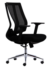 Chất liệu: lưng ghế bọc lưới, nệm ngồi bọc vải, chân sắt mạ chrome, tay điều chỉnh