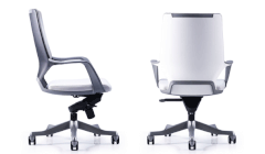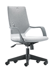 Chất liệu: ghế có khung lưng màu trắng, đen hoặc xám, lưng ghế bọc vải hoặc vynil, nệm ngồi bọc vải hoặc vynil, chân nhựa, tay nhựa cố định