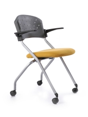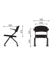 Chất liệu: lưng ghế bằng nhựa, nệm ngồi bọc vải, chân sắt sơn tĩnh điện, tay nhựa