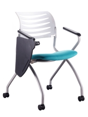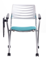 Chất liệu: lưng ghế bằng nhựa, nệm ngồi bọc vải, chân sắt sơn tĩnh điện